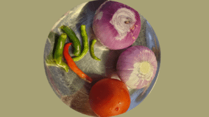 2.फिर हम 2 प्याज ,1 टमाटर ,4 – 5 हरी मिर्च ले लेंगे ।